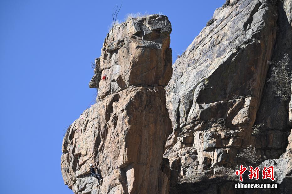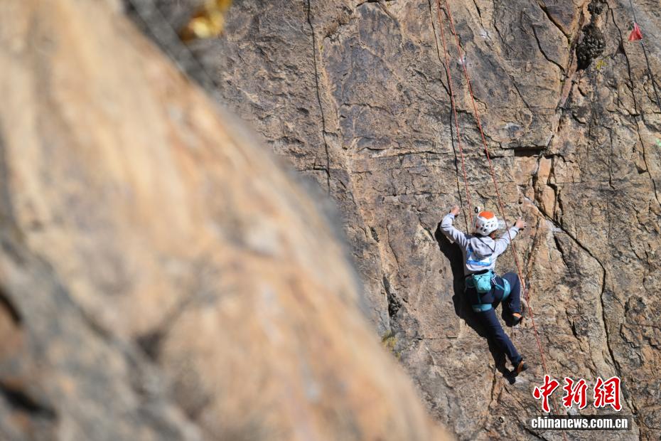 11月29日,2025西藏自治區(qū)攀巖自然巖壁公開(kāi)賽在拉薩市奪底溝吉倉(cāng)自然巖壁場(chǎng)地開(kāi)賽。來(lái)自中國(guó)全國(guó)的70名運(yùn)動(dòng)員、高校學(xué)生及社會(huì)攀巖愛(ài)好者參賽。中新社記者 貢嘎來(lái)松 攝