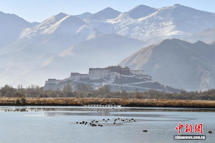 2025年12月9日,世界海拔最高的城市內(nèi)陸天然濕地——拉薩拉魯濕地國(guó)家級(jí)自然保護(hù)區(qū)盡顯冬日盛景。這片總面積12.2平方公里的“拉薩之肺”,初冬時(shí)節(jié)蘆葦泛金,赤麻鴨、斑頭雁等候鳥在此嬉戲覓食。遠(yuǎn)處布達(dá)拉宮巍然矗立,周邊雪山皚皚,自然生態(tài)與人文景觀交相輝映,構(gòu)成一幅兼具壯闊與靈動(dòng)的高原畫卷,彰顯著拉薩人與自然和諧共生的生態(tài)之美。圖為拉薩市民在拉魯濕地晨練。中新社記者 貢嘎來(lái)松 攝