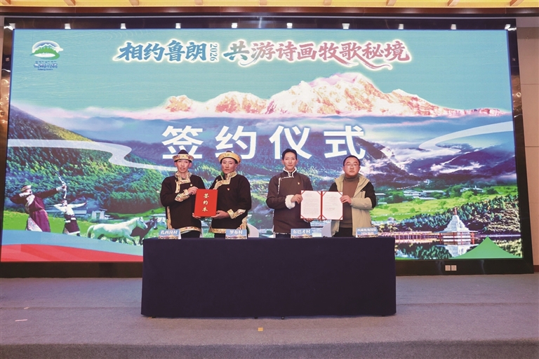 現(xiàn)場,還舉行了簽約儀式,魯朗東巴才村、羅布村、扎西崗村村委會(huì)代表與拉薩多家優(yōu)質(zhì)旅行社簽訂合作意向協(xié)議。雙方圍繞文旅深度融合發(fā)展趨勢,聚焦沉浸式體驗(yàn)、定制化旅游等細(xì)分領(lǐng)域展開深入交流,達(dá)成多項(xiàng)合作共識(shí),將進(jìn)一步拓寬魯朗景區(qū)的客源渠道,提升品牌影響力。