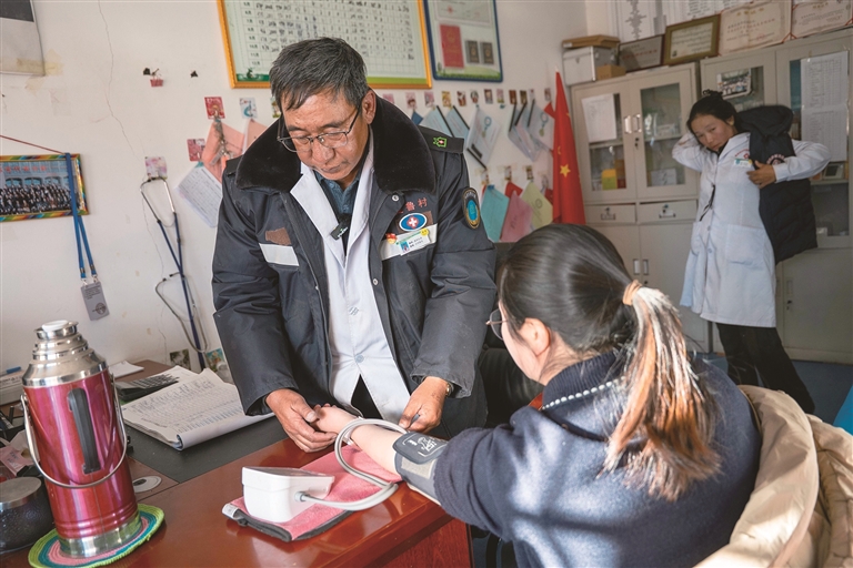 他早已習(xí)慣讓手機(jī)保持開機(jī)狀態(tài),清晨急診、深夜出診皆是尋常?!按迕裢懈队谖?,豈能令其久候?!边@樸實(shí)話語常伴其行。面對(duì)行動(dòng)不便的老人和幼兒,他定期叩門量血壓、做檢查,將健康守護(hù)送到家中。每次獲得表彰時(shí)他總是謙遜地說:“這是對(duì)鄉(xiāng)醫(yī)群體的肯定,我定不負(fù)這份托付?!?/p>