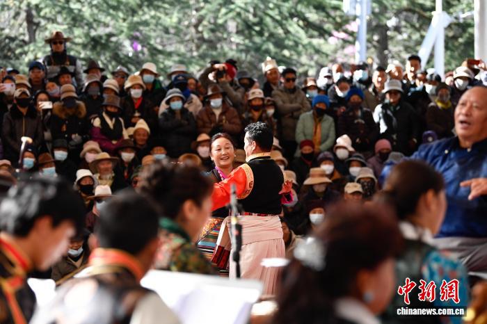 圖為群眾音樂(lè)會(huì)表演拉薩堆諧《強(qiáng)確拉》。中新社記者 貢嘎來(lái)松 攝