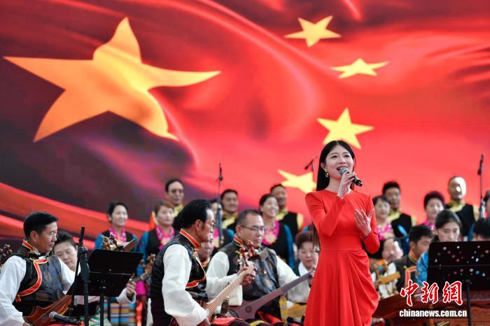 圖為群眾音樂(lè)會(huì)獨(dú)唱《祝福祖國(guó)》。中新社記者 貢嘎來(lái)松 攝