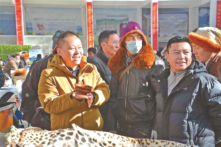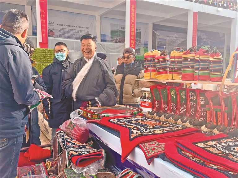 走進(jìn)展銷會(huì)現(xiàn)場(chǎng),最直觀的感受就是品類全、品質(zhì)好,藏北特色撲面而來(lái)。全市11個(gè)縣(區(qū))的1485家參展商齊聚于此,帶來(lái)100余種高原特色產(chǎn)品,把草原上的好東西都搬到了消費(fèi)者面前。特色畜產(chǎn)品是當(dāng)之無(wú)愧的消費(fèi)“主力軍”,“那曲牦?!钡乩順?biāo)志產(chǎn)品、嘎?tīng)柕碌葏^(qū)域品牌,憑借“云端牧場(chǎng)、黃金奶源”的獨(dú)特品質(zhì),一亮相就成了爆款,不少市民圍著展臺(tái)詢價(jià)選購(gòu)。