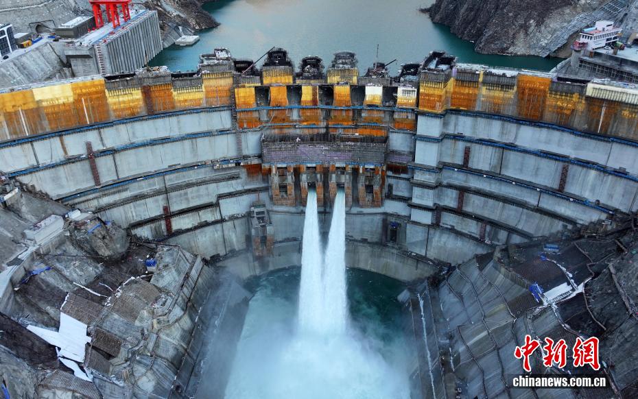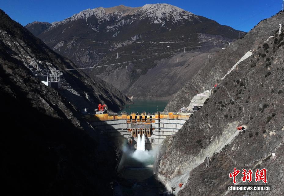 12月27日,中國在建海拔最高雙曲拱壩電站——葉巴灘水電站首批機(jī)組正式投產(chǎn)發(fā)電。葉巴灘水電站位于四川省甘孜州白玉縣與西藏自治區(qū)貢覺縣交界的金沙江干流上。水電站總裝機(jī)容量224萬千瓦,此次首批投產(chǎn)發(fā)電的機(jī)組為4號(hào)和3號(hào)機(jī)組。圖為12月26日,航拍葉巴灘水電站外景。(無人機(jī)照片)中新社記者 王磊 攝