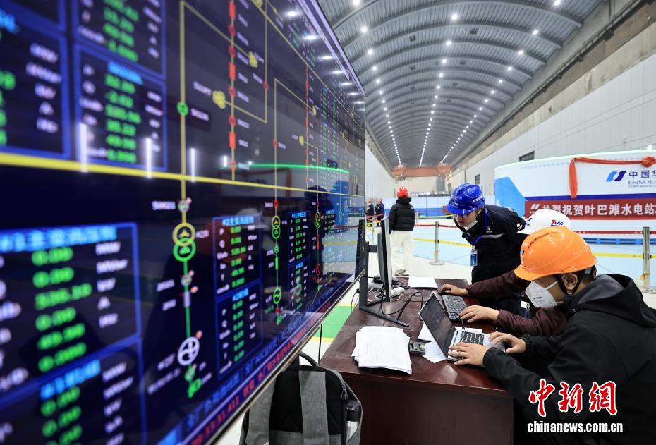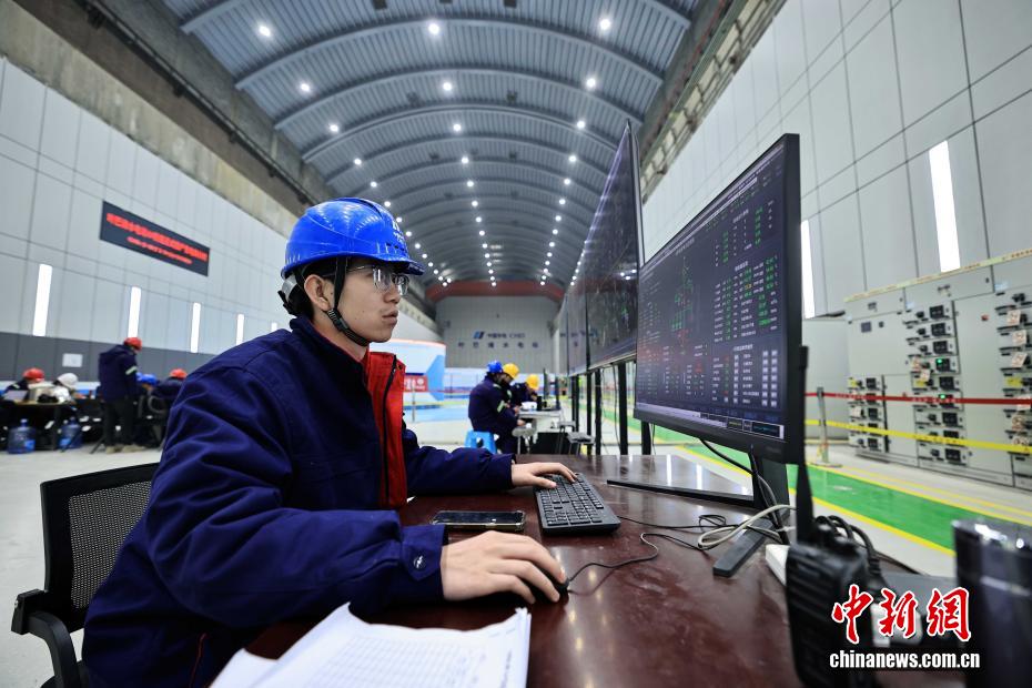 12月27日,中國在建海拔最高雙曲拱壩電站——葉巴灘水電站首批機(jī)組正式投產(chǎn)發(fā)電。葉巴灘水電站位于四川省甘孜州白玉縣與西藏自治區(qū)貢覺縣交界的金沙江干流上。水電站總裝機(jī)容量224萬千瓦,此次首批投產(chǎn)發(fā)電的機(jī)組為4號(hào)和3號(hào)機(jī)組。圖為12月24日,中控室值班人員正開展上位機(jī)監(jiān)盤工作。中新社記者 王磊 攝