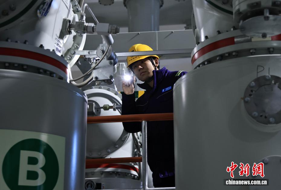 12月27日,中國在建海拔最高雙曲拱壩電站——葉巴灘水電站首批機(jī)組正式投產(chǎn)發(fā)電。葉巴灘水電站位于四川省甘孜州白玉縣與西藏自治區(qū)貢覺縣交界的金沙江干流上。水電站總裝機(jī)容量224萬千瓦,此次首批投產(chǎn)發(fā)電的機(jī)組為4號(hào)和3號(hào)機(jī)組。圖為12月24日,值班員在GIS巡視檢查。中新社記者 王磊 攝