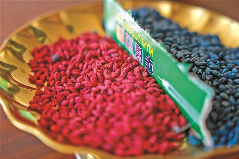 清洗后曬干上色的青稞,用于制作青稞文創(chuàng)產(chǎn)品。