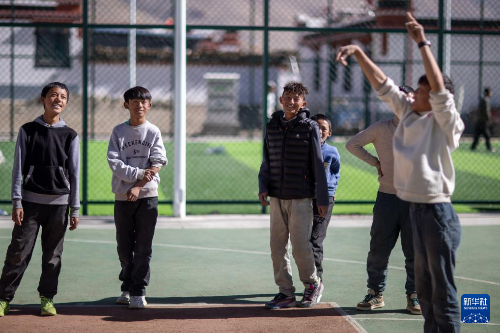 1月5日,少年在定日縣長(zhǎng)所鄉(xiāng)森嘎村的籃球場(chǎng)打球。新華社記者 李鍵 攝