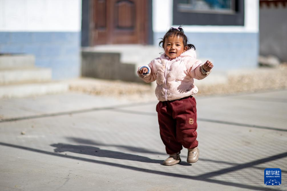 1月5日,小朋友在定日縣長(zhǎng)所鄉(xiāng)森嘎村玩耍。新華社記者 索朗德吉 攝