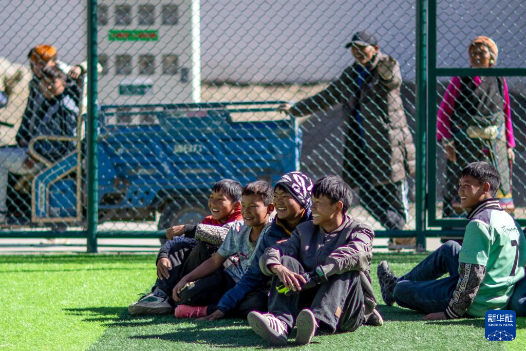 1月5日,在森嘎村的足球場上,少年在觀看伙伴們踢球。新華社記者 姜帆 攝