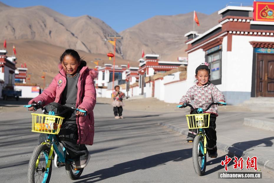 2025年1月7日,西藏日喀則市定日縣發(fā)生6.8級地震,造成重大人員傷亡。地震發(fā)生后,30天內(nèi)完成民房重建規(guī)劃、選址、設(shè)計(jì),90天內(nèi)完成災(zāi)后恢復(fù)重建總體方案編制和報(bào)審,震后100天內(nèi)進(jìn)入項(xiàng)目全面實(shí)施階段,220天實(shí)現(xiàn)災(zāi)后恢復(fù)重建首批入住目標(biāo),295天實(shí)現(xiàn)重建民房、維修加固民房基本建成并交付受災(zāi)民眾,在海拔4300米以上極度缺氧、建材短缺、施工力量薄弱的地震災(zāi)區(qū),創(chuàng)造了“當(dāng)年受災(zāi)、當(dāng)年入住”的重建奇跡。如今,民眾生產(chǎn)生活恢復(fù)秩序,他們將在新居內(nèi)迎接第一個(gè)日喀則農(nóng)事新年。圖為2026年1月5日,定日縣長所鄉(xiāng)森嘎村,兩個(gè)小女孩在新房前騎車。貢確 攝