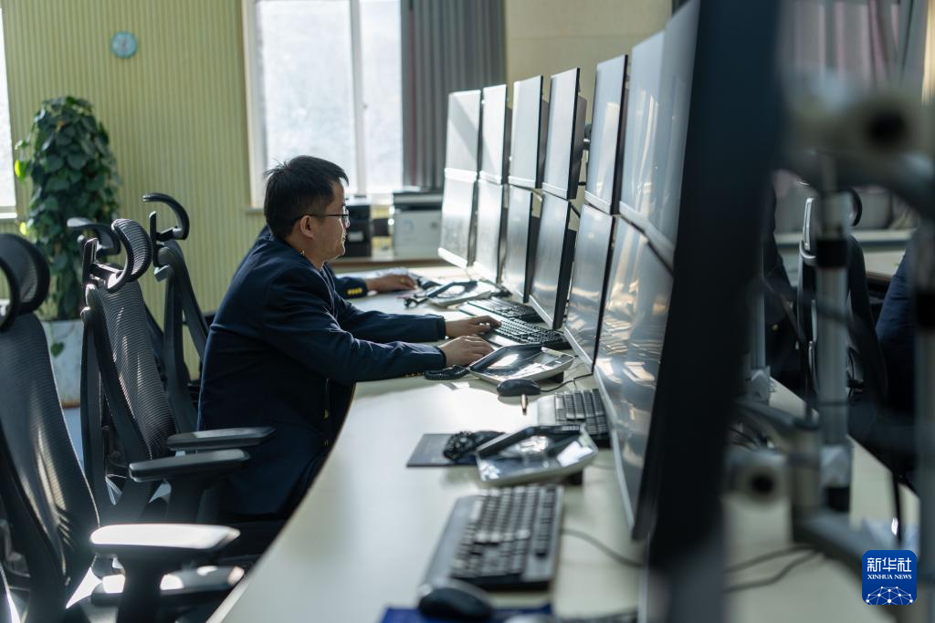 1月6日,拉薩基礎(chǔ)設(shè)施段安全生產(chǎn)指揮中心人員正在進(jìn)行視頻盯控、集中監(jiān)測(cè)。新華社記者 旦增尼瑪曲珠 攝