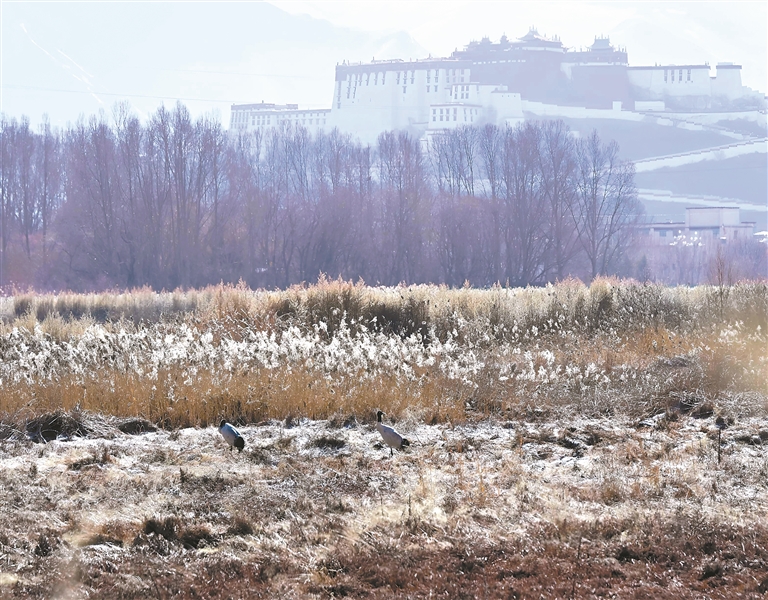 作為世界海拔最高的城市天然濕地,拉薩市拉魯濕地水草豐茂、水質優(yōu)良,黑頸鶴、斑頭雁、赤麻鴨等珍稀鳥類在此覓食嬉戲,這得益于持續(xù)的生態(tài)修復與保護。濕地鳥類種群數(shù)量穩(wěn)步增長,群鳥翔集的靈動圖景,不僅勾勒出高原生物多樣性的和諧畫卷,更彰顯了拉薩人與自然共生的生態(tài)成效。