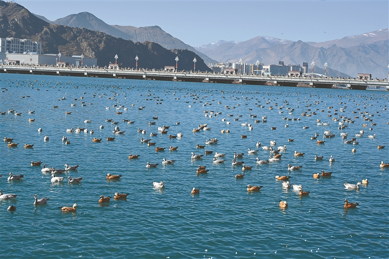 近年來(lái),拉薩市堅(jiān)定不移走生態(tài)優(yōu)先、綠色發(fā)展之路,積極踐行“水潤(rùn)城、綠滿城”發(fā)展理念,高標(biāo)準(zhǔn)推進(jìn)拉薩河城區(qū)段人工湖生態(tài)治理工程。據(jù)了解,該工程有效改善了城市水生態(tài)環(huán)境,提升了市民生活品質(zhì),更構(gòu)建了優(yōu)質(zhì)生態(tài)空間,吸引大批候鳥駐留越冬。如今,這片水域既是市民休閑游憩的好去處,也是候鳥越冬的天堂,刻畫了人與自然和諧共生的美好畫卷。
