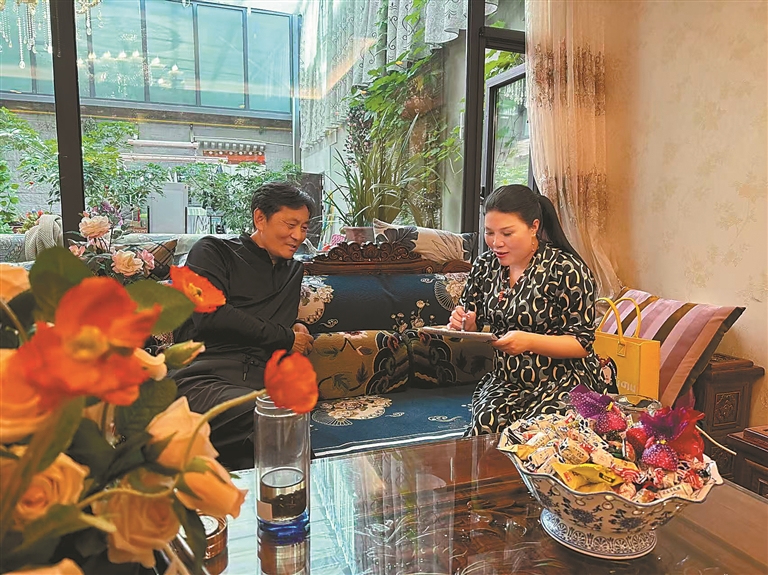 圖為滿格格在采訪藏族民俗專家。