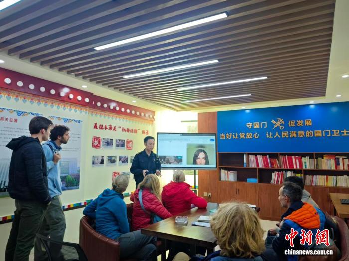 圖為拉薩海關(guān)向外籍旅客宣傳海關(guān)進出境監(jiān)管規(guī)定。昂翁拉姆 攝