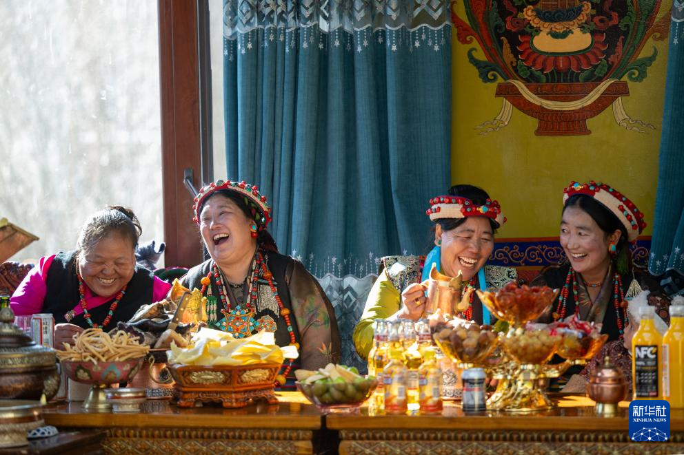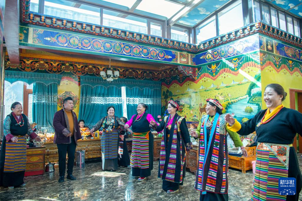 1月20日,日喀則市桑珠孜區(qū)聶日雄鄉(xiāng)楚松村村民在歡度新年。新華社發(fā)(旦增努布 攝)