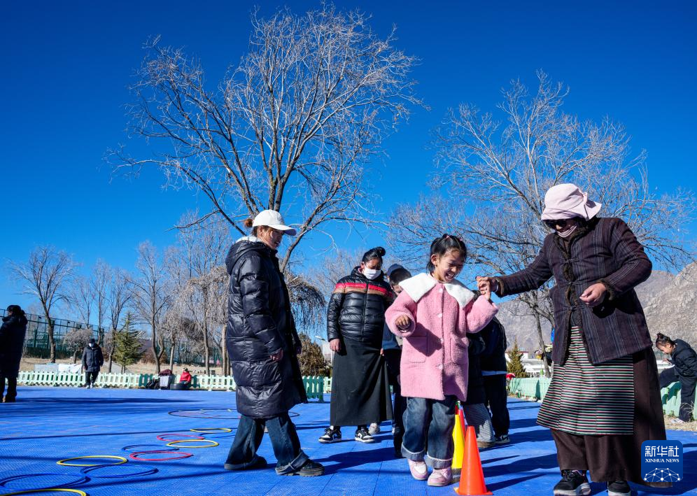 1月22日,在拉薩市全民健身體彩公園,殘障兒童在家長(zhǎng)陪同下參加“陽(yáng)光殘障兒童公益興趣班”體適能訓(xùn)練課程。新華社記者 丁增尼達(dá) 攝