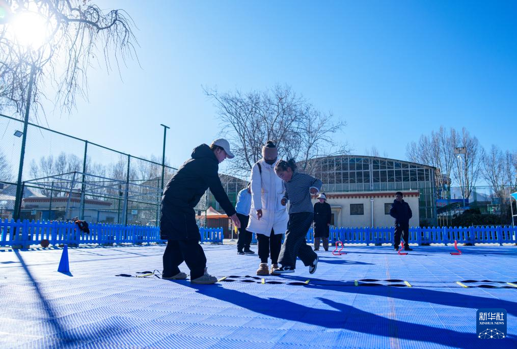 1月22日,在拉薩市全民健身體彩公園內(nèi),殘障兒童在家長(zhǎng)陪同下參加“陽(yáng)光殘障兒童公益興趣班”體適能訓(xùn)練課程。新華社記者 丁增尼達(dá) 攝