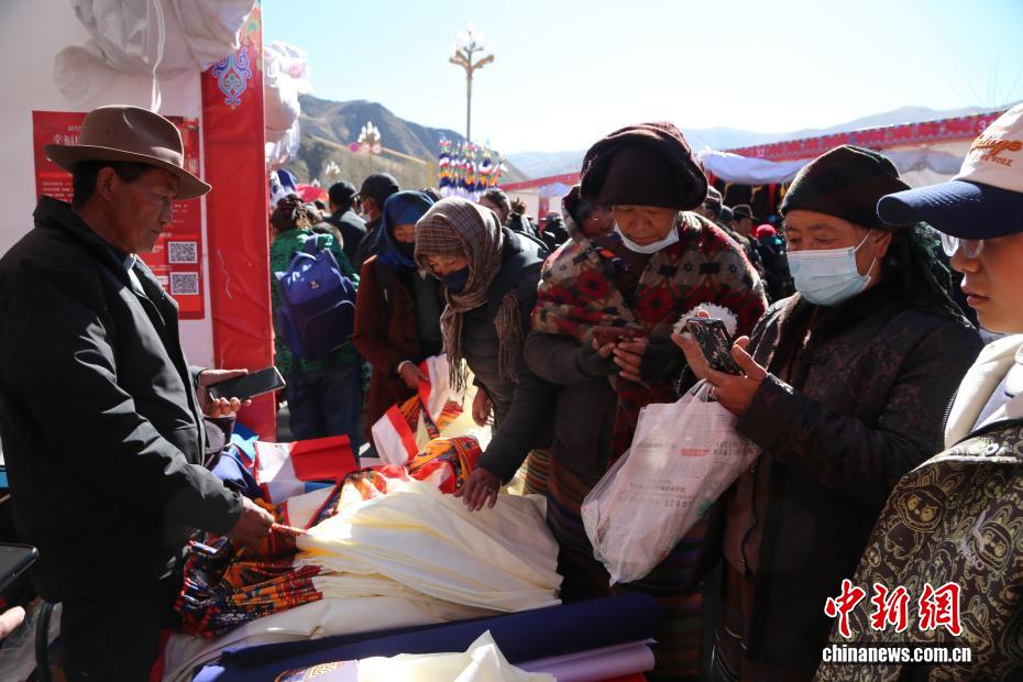 2月2日,西藏自治區(qū)山南市瓊結(jié)縣2026年“幸福瓊結(jié)·優(yōu)享年貨”促消費(fèi)暨展銷活動(dòng)在朗熱大道啟幕,為春節(jié)、藏歷新年預(yù)熱添彩。本次活動(dòng)由瓊結(jié)縣投入200萬元人民幣打造,為期7天,吸引103家商戶入駐,其中73家為本地商戶,帶來150余種特色商品,高原農(nóng)產(chǎn)、藏式手工藝品、傳統(tǒng)年貨齊聚現(xiàn)場(chǎng),盡顯藏地年味?;顒?dòng)推出農(nóng)業(yè)銀行掌銀立減優(yōu)惠,民眾無需領(lǐng)券即可享實(shí)惠,現(xiàn)場(chǎng)還設(shè)置咨詢臺(tái)與宣傳點(diǎn),切實(shí)保障消費(fèi)安全。圖為民眾在選購香布(藏式建筑門窗上裝飾的五彩布料)。倫珠澤仁 攝