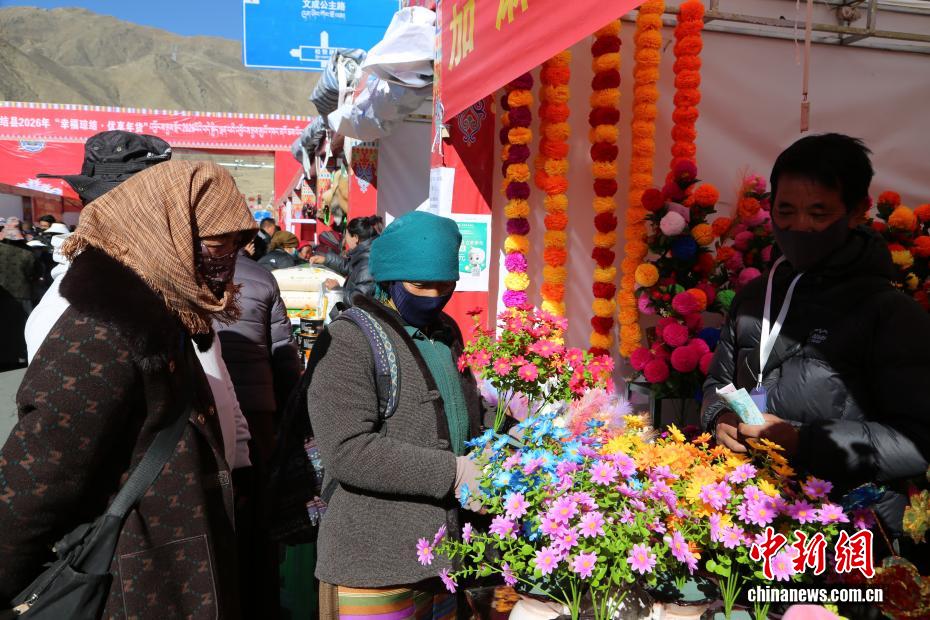 2月2日,西藏自治區(qū)山南市瓊結(jié)縣2026年“幸福瓊結(jié)·優(yōu)享年貨”促消費(fèi)暨展銷活動(dòng)在朗熱大道啟幕,為春節(jié)、藏歷新年預(yù)熱添彩。本次活動(dòng)由瓊結(jié)縣投入200萬元人民幣打造,為期7天,吸引103家商戶入駐,其中73家為本地商戶,帶來150余種特色商品,高原農(nóng)產(chǎn)、藏式手工藝品、傳統(tǒng)年貨齊聚現(xiàn)場(chǎng),盡顯藏地年味?;顒?dòng)推出農(nóng)業(yè)銀行掌銀立減優(yōu)惠,民眾無需領(lǐng)券即可享實(shí)惠,現(xiàn)場(chǎng)還設(shè)置咨詢臺(tái)與宣傳點(diǎn),切實(shí)保障消費(fèi)安全。圖為民眾在選購塑料花。倫珠澤仁 攝