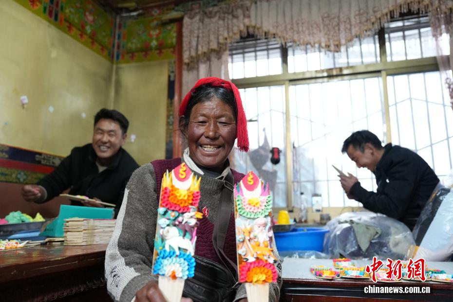 2月4日,隨著藏歷新年臨近,拉薩街頭年味漸濃,年貨市場上的“孜扎”迎來熱銷。酥油花藏語稱“孜扎”,是藏歷新年吉祥物切瑪盒的重要組件,也是藏族民眾家中必備的年貨。酥油花以酥油為主要原料,由匠人純手工捏制而成,造型涵蓋佛像、人物、花卉樹木、飛禽走獸等,常見圖案包含吉祥八寶、和諧四瑞、長壽圖等,承載著藏族民眾對(duì)新年平安吉祥、萬事順?biāo)斓拿篮闷碓?。圖為手工藝人在制作酥油花。貢確 攝