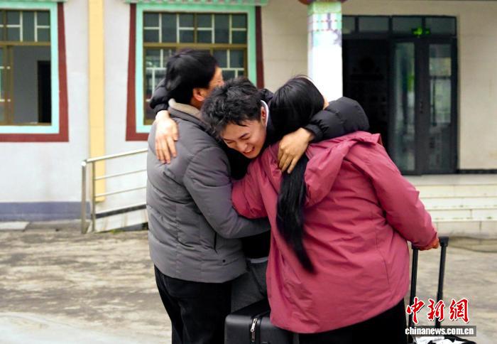 圖為何軍杰與從安徽合肥遠(yuǎn)道而來(lái)的父母團(tuán)圓。受訪者供圖