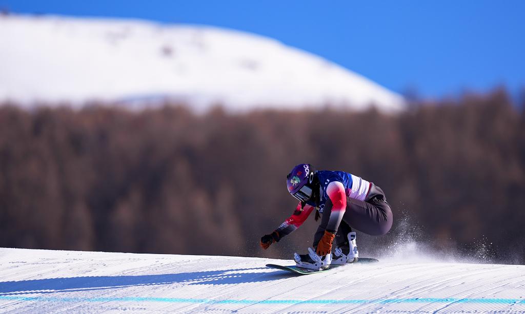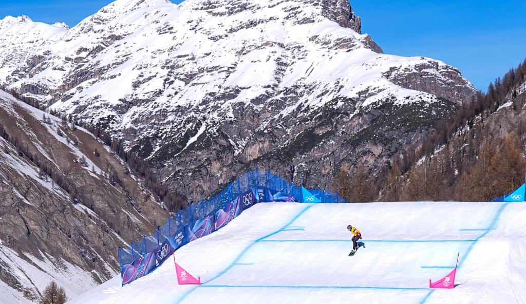 13日,米蘭冬奧會(huì)單板滑雪女子障礙追逐比賽在這里進(jìn)行。22歲的藏族姑娘擁青拉姆滑過(guò)終點(diǎn)線后停住,扶了扶雪鏡,站著緩了一會(huì)兒。她沒(méi)有立刻去看成績(jī),而是抬頭望向剛剛滑下來(lái)的那條賽道——半壁、跳臺(tái)、彎道一段段延伸向山腳。