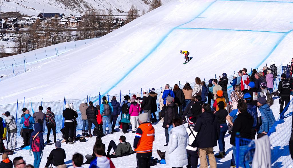 利維尼奧的雪道在陽(yáng)光下泛著冷光,雪面被一趟趟滑行刻出清晰的軌跡。這座山谷小鎮(zhèn)的兩側(cè),阿爾卑斯山脈輪廓分明。