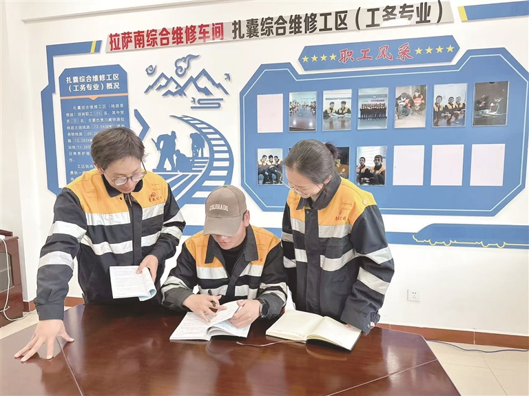 經(jīng)過系統(tǒng)規(guī)范的三級培訓,2025年10月,嘎瑪倫珠與白瑪措姆一同被分配到扎囊綜合維修工區(qū)。對于他們,這是職業(yè)生涯的嶄新起點,也是一場回饋家鄉(xiāng)、建設家鄉(xiāng)的初心之約。“上初中時,第一次看見飛馳的火車,我心里便有了一個疑問,它是如何在這片高天厚土間穩(wěn)穩(wěn)穿行的?如今,我終于穿上作業(yè)服,成了守護列車前行的一員,這份驕傲,早已深深鐫刻在心底?!闭劶俺跣模卢攤愔榈难垌?,蕩漾著藏不住的自豪與堅定。