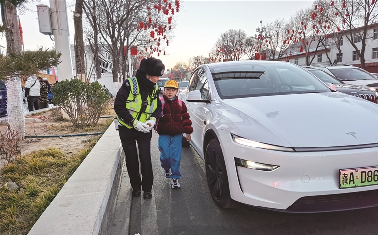 在拉薩市第一小學江蘇路分校門口,記者看到民警在校園門口斑馬線、十字路口等關鍵位置定崗定責,配合學校老師和安保人員形成聯(lián)動合力,引導學生排隊入校、安全通行。警燈閃爍、哨聲清脆,車流在民警的指揮下快速分流,原本繁忙的路段變得井然有序。家長卓女士告訴記者:“每天上學、放學都能看到民警在學校門口守護,過馬路有人管、停車有秩序,我們接送孩子都特別放心。”