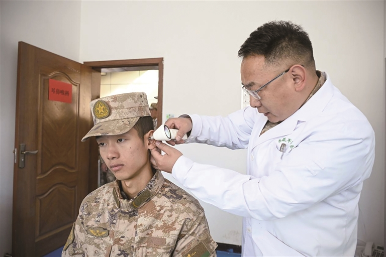醫(yī)生為官兵進行檢查。