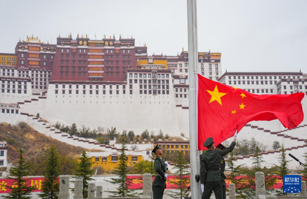 3月28日,布達(dá)拉宮廣場舉行升國旗儀式,隆重紀(jì)念西藏百萬農(nóng)奴解放67周年。新華社記者 丁增尼達(dá) 攝