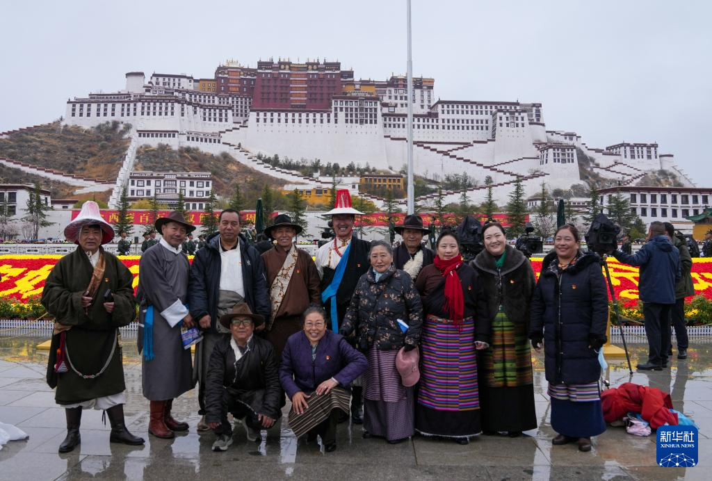 3月28日,群眾代表在布達(dá)拉宮廣場合影留念。新華社記者 晉美多吉 攝