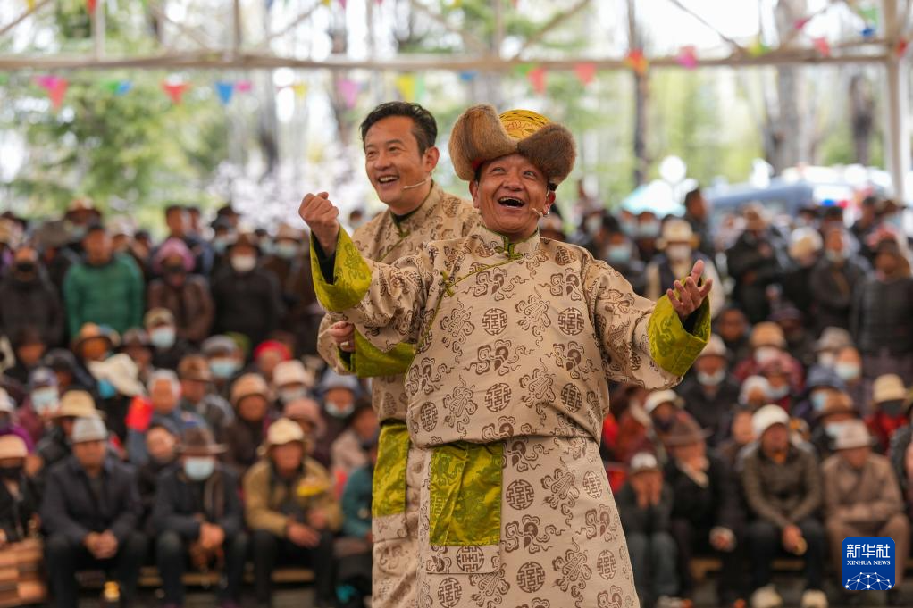 3月28日,演員在拉薩市宗角祿康公園內(nèi)舉辦的西藏百萬農(nóng)奴解放紀(jì)念日群眾文藝演出活動上表演相聲。新華社記者 晉美多吉 攝