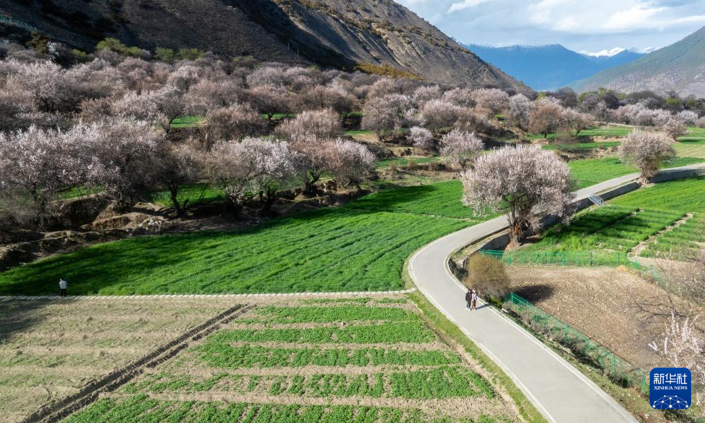 這是4月2日在林芝巴宜區(qū)朵當(dāng)村拍攝的桃林(無(wú)人機(jī)照片)。新華社記者 丁增尼達(dá) 攝