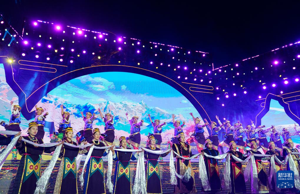 這是4月3日拍攝的林芝第二十三屆桃花旅游文化節(jié)開(kāi)幕式文藝演出現(xiàn)場(chǎng)。新華社記者 丁增尼達(dá) 攝