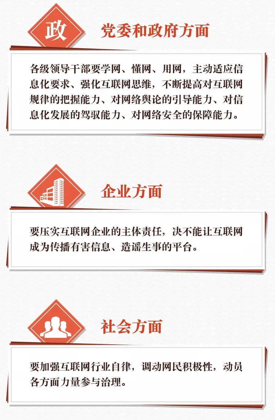 如何提高網(wǎng)絡(luò)綜合治理能力、清朗網(wǎng)絡(luò)空間?對此,習近平開出藥方: