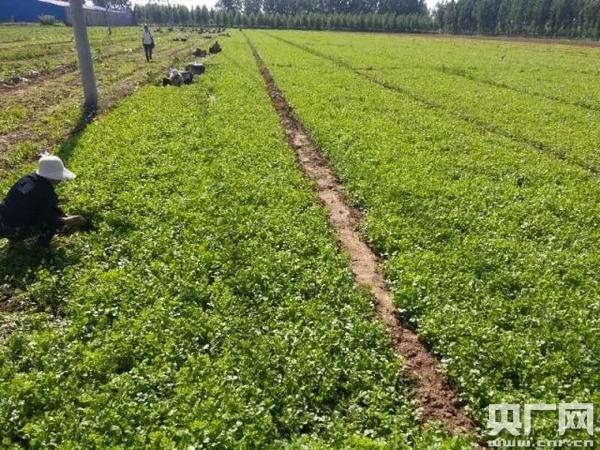 在河北省正定縣廂同村,有一片一望無(wú)際的香菜田。初夏時(shí)節(jié),正是這里最繁忙的時(shí)候。香菜已經(jīng)長(zhǎng)出綠油油的苗芽,在金色的麥田旁顯得朝氣蓬勃。