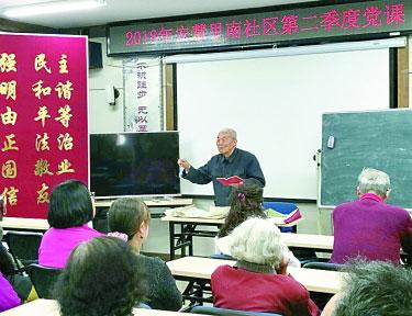 日前,北京市朝陽區(qū)亞運(yùn)村街道舉辦了“我為身邊黨員點(diǎn)贊”主題黨日活動。圖為被群眾點(diǎn)贊的老黨員黃寅生在給社區(qū)黨員群眾講黨課。曹雷 攝/光明圖片