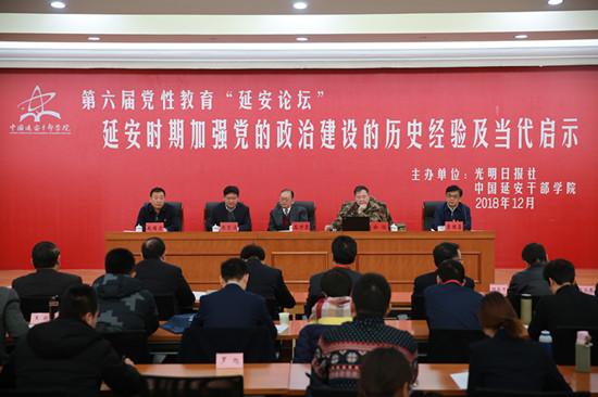 12月27日,以“延安時期加強(qiáng)黨的政治建設(shè)的歷史經(jīng)驗(yàn)及當(dāng)代啟示”為主題,由光明日報社與中國延安干部學(xué)院主辦的第六屆黨性教育“延安論壇”在延安開幕。中國延安干部學(xué)院常務(wù)副院長李國喜、光明日報社副總編輯張碧涌出席開幕式并致辭,原中央黨史研究室副主任石仲泉,國防大學(xué)二級技術(shù)教授、專業(yè)技術(shù)少將徐焰作主旨發(fā)言。論壇由中國延安干部學(xué)院副院長趙耀宏主持。