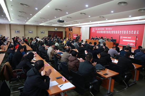 在主旨發(fā)言和分論壇階段,石仲泉、徐焰、龍再先、龔云、戴焰軍、辛逸、韓強(qiáng)、包心鑒等知名學(xué)者和專家教授,圍繞加強(qiáng)政治建設(shè)的重大意義、理論邏輯、實(shí)踐要求、做法經(jīng)驗(yàn)等問題,進(jìn)行深入交流研討,貢獻(xiàn)思想智慧和研究成果。