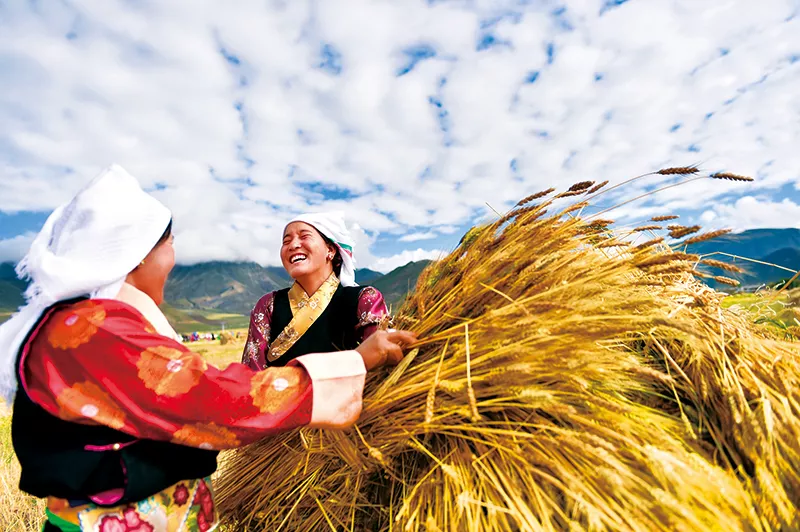 經黨中央批準、國務院批復,自2018年起,將每年農歷秋分設立為中國農民豐收節(jié),這是第一個在國家層面為農民設立的節(jié)日,進一步彰顯了“三農”工作重中之重的基礎地位。 圖為2018年9月23日,首個中國農民豐收節(jié),拉薩市林周縣松盤鄉(xiāng)松盤村兩名藏族農民在田間。 新華社記者 覺果/攝