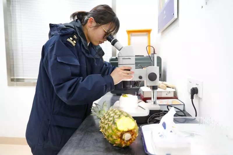 現(xiàn)場(chǎng),海關(guān)關(guān)員迅速進(jìn)行核查貨證,品名、數(shù)量、許可證、提運(yùn)單號(hào)、智利植檢證書(shū),一一核對(duì)相符后按照規(guī)定比例抽查。一箱箱貼著“輸往中華人民共和國(guó)”中英文標(biāo)識(shí)的櫻桃被送上檢疫操作臺(tái)進(jìn)行感官檢驗(yàn),并對(duì)可疑果進(jìn)行剖果,甄別是否有地中海實(shí)蠅等檢疫性有害生物為害;揭下包裝箱標(biāo)簽,在數(shù)據(jù)平臺(tái)上查詢(xún)?cè)撆鷻烟业妮斎A櫻桃果園、包裝廠,確認(rèn)是否經(jīng)智利農(nóng)牧局(SAG)注冊(cè),并經(jīng)海關(guān)總署認(rèn)可。最后,要迅速抽取代表性的復(fù)合樣品,送實(shí)驗(yàn)室實(shí)施安全風(fēng)險(xiǎn)監(jiān)控,對(duì)農(nóng)殘和重金屬項(xiàng)目的針對(duì)性檢測(cè)。天剛蒙蒙亮,所有智利櫻桃全部通過(guò)了檢疫,檢驗(yàn)合格的智利櫻桃被迅速分銷(xiāo)至各大商場(chǎng)、超市以及電商渠道。摁下秒表,從櫻桃從智利起飛到進(jìn)入中國(guó)市場(chǎng),整個(gè)過(guò)程只用了不到48個(gè)小時(shí)。