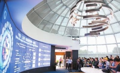 黨的十八屆三中全會(huì)以來,上海堅(jiān)持“吃改革飯、走開放路、打創(chuàng)新牌”,以當(dāng)好全國(guó)改革開放排頭兵、創(chuàng)新發(fā)展先行者的姿態(tài),奮力創(chuàng)造城市發(fā)展新傳奇。圖為工作人員在介紹中國(guó)(上海)國(guó)際貿(mào)易單一窗口的相關(guān)情況。