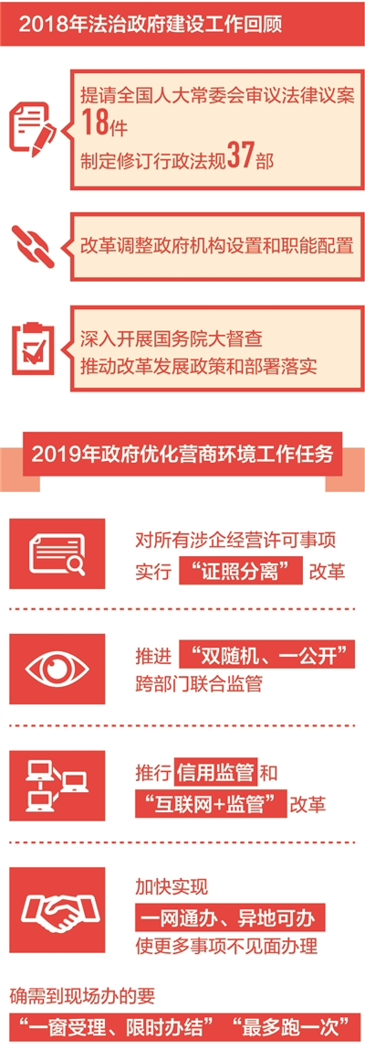 習(xí)近平總書記在黨的十九大報告中指出,要建設(shè)法治政府,推進依法行政,嚴(yán)格規(guī)范公正文明執(zhí)法。政府工作報告中,許多法治關(guān)鍵詞折射出法治政府建設(shè)的堅實步伐。代表委員們認(rèn)為,依法行政、加強公正監(jiān)管、創(chuàng)新社會治理,為營造良好經(jīng)濟社會環(huán)境提供有力保障。