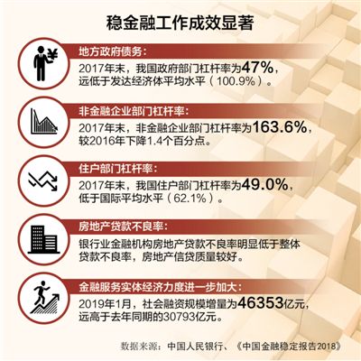 完善穩(wěn)金融的宏觀經(jīng)濟(jì)政策框架。財政政策、貨幣政策等宏觀經(jīng)濟(jì)政策與穩(wěn)金融之間存在很強(qiáng)的內(nèi)在關(guān)聯(lián)性。要根據(jù)去年底召開的中央經(jīng)濟(jì)工作會議的部署,強(qiáng)化財政政策和貨幣政策的逆周期調(diào)節(jié)作用,繼續(xù)實施積極的財政政策和穩(wěn)健的貨幣政策,著力穩(wěn)定總需求,為穩(wěn)金融創(chuàng)造良好的宏觀經(jīng)濟(jì)環(huán)境。積極的財政政策要加力提效,實施更大規(guī)模的減稅降費(fèi),較大幅度增加地方政府專項債券規(guī)模;穩(wěn)健的貨幣政策要松緊適度,保持流動性合理充裕,改善貨幣政策傳導(dǎo)機(jī)制,提高直接融資比重,解決好民營企業(yè)和小微企業(yè)融資難、融資貴問題。