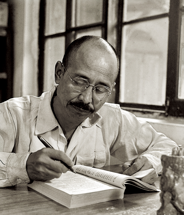 作家柳青在學(xué)習(xí),他的主要作品有《種谷記》、《銅墻鐵壁》、《創(chuàng)業(yè)史》。 新華社照片
