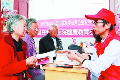 近日,河南省寶豐縣周莊鎮(zhèn)許多黨員青年志愿者深入偏遠(yuǎn)鄉(xiāng)村,開(kāi)展志愿服務(wù)。圖為志愿者在寶豐縣周莊鎮(zhèn)西黃村、劉灣村為困難群眾義診。王雙正攝/光明圖片