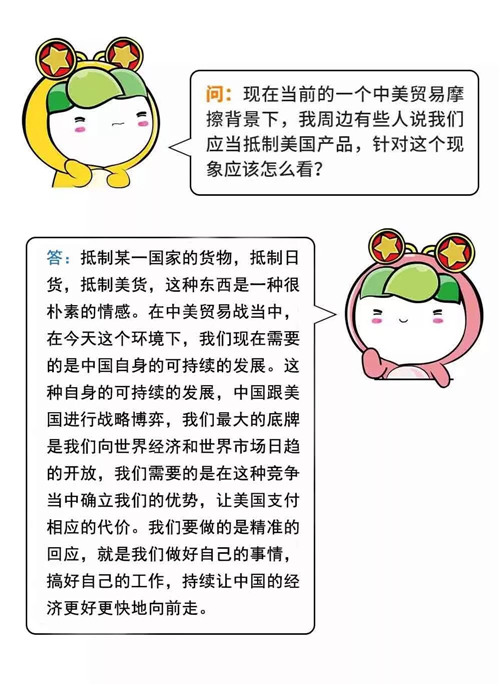 面對這樣的局勢,一些年輕人開始自發(fā)抵制美國產(chǎn)品。雖然這是一種很樸素的情感,但我們應該理性看待當前中美關系。從中美關系的歷史變化中可以分析出,影響美國的對華戰(zhàn)略主要因素是美國自身的困境和中國實力的變化。中國跟美國進行戰(zhàn)略博弈,我們最大的底牌是向世界經(jīng)濟和世界市場日趨地開放,確立我們的優(yōu)勢,讓美國支付相應的代價。同時,要做好自己的事情,讓中國的經(jīng)濟更好更快地向前走,保持對國家的熱愛,沒有必要人為地去煽動一些情緒。
